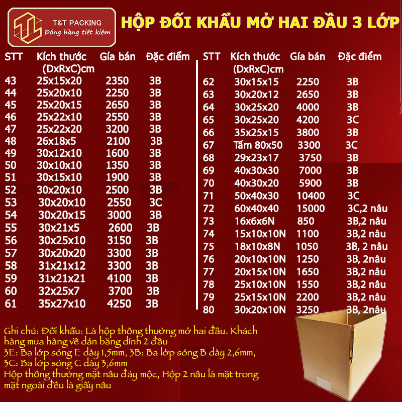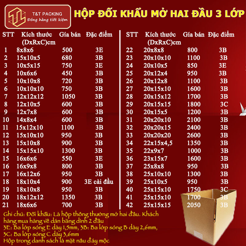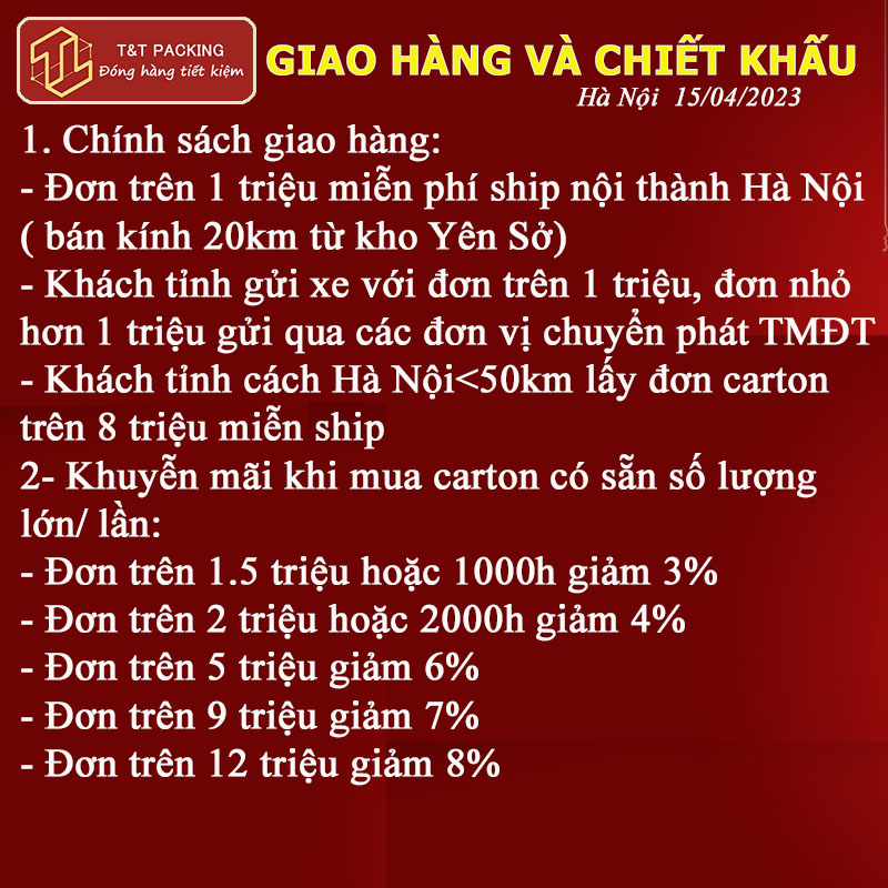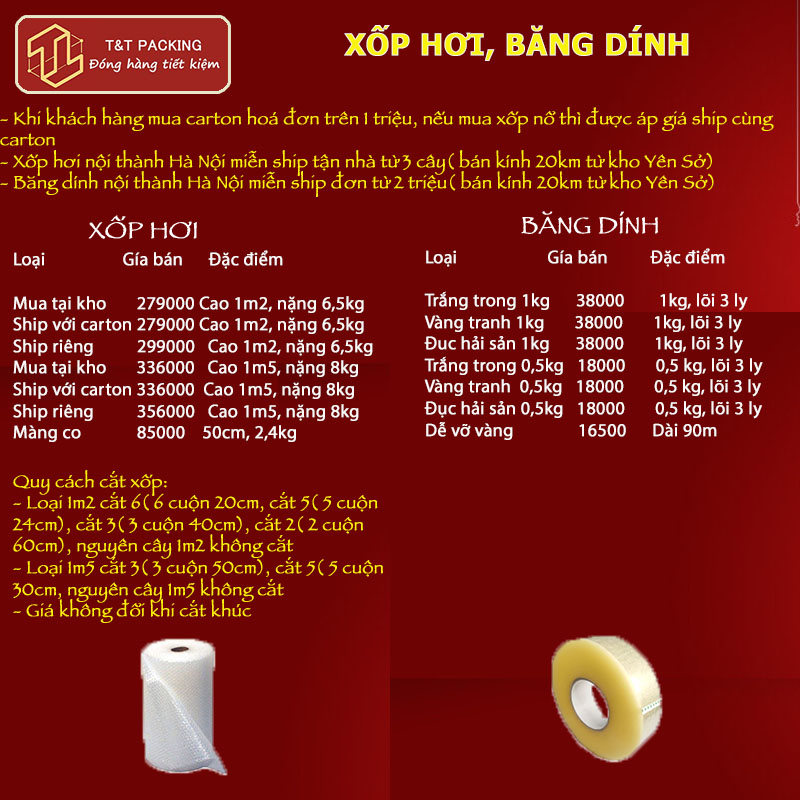 Công ty cổ phần T&T Packing cập nhật báo giá carton xốp hơi băng dính cập nhật mới nhất ngày 15/04/2024 tại cơ sở HÀ NỘI